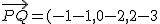 Halla la ecuación vectorial de la recta que pasa por los puntos P(1,2,3) y Q(-1,0,2)