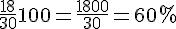 Se sabe que de 30 alumnos de una clase han aprobado Matemáticas 18 ¿Qué tanto por ciento de la clase ha aprobado?