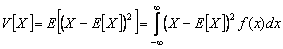 Se define la varianza como la esperanza del cuadrado de la diferencia entre la variable y su esperanza: V(X) = E[ (X - E[X] )2 ], teniendo en cuenta la definición de esperanza, la varianza queda