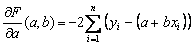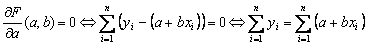 Habrá que encontrar a y b que hagan mínimo el error al cuadrado. Para obtener los extremos derivamos e igualamos a 0.