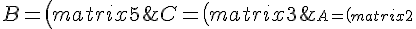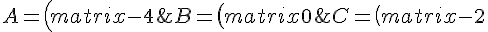\;,\;B=\left(\begin{matrix}5&4&1\\-5&-2&3\\4&-2&-4\end{matrix}\right)\;y\;C=\left(\begin{matrix}3&-5&-1\\4&4&-3\\1&-5&3\end{matrix}\right))