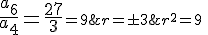 Si conocemos dos términos cualesquiera de una progresión geométrica podemos hallar su término general, si los términos son consecutivos o difieren un número impar de lugares, encontraremos una única progresión pero si difieren un número par de lugares habrá dos sucesiones que cumplan con las condiciones. Veámoslo en un par de ejemplos.