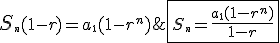 Por tanto tenemos tres fórmulas equivalentes para la suma de n términos en una progresión geométrica que usaremos indistintamente, según nos convenga