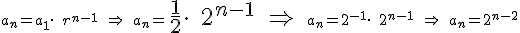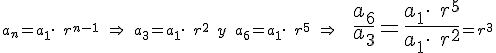 Si conocemos dos términos cualesquiera de una progresión geométrica podemos hallar su término general, si los términos son consecutivos o difieren un número impar de lugares, encontraremos una única progresión pero si difieren un número par de lugares habrá dos sucesiones que cumplan con las condiciones. Veámoslo en un par de ejemplos.