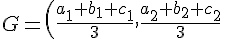 Si situamos el triángulo en unos ejes coordenados, es decir, cada punto tiene dos coordenadas A(a1,a2), B(b1,b2) y C(c1,c2) entonces el baricentro tiene por coordenadas: